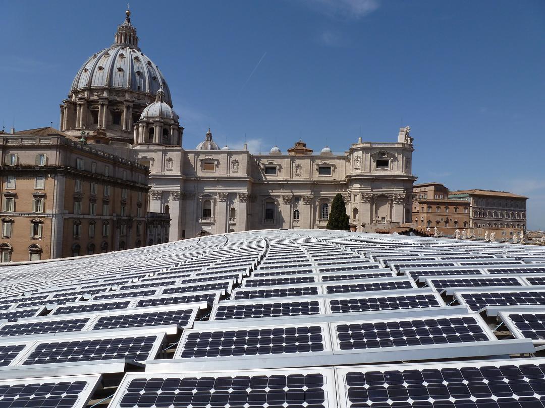 Der Vatikan selbst betreibt seit 2008 Solarstromanlagen (vgl. Pressefoto). Auch in anderen Kontinenten hat das Solarzeitalter inzwischen begonnen. So hat beispielsweise das marokkanische Ministerium für Islamische Angelegenheiten einem Bericht des Nachrichtenportals „Afriscoop“ zufolge jüngst den Bau von Photovoltaiksystemen auf den 15.000 Moscheen des Landes ins Auge gefasst, um den Energieverbrauch der Gebäude um bis zu 40 Prozent zu senken.