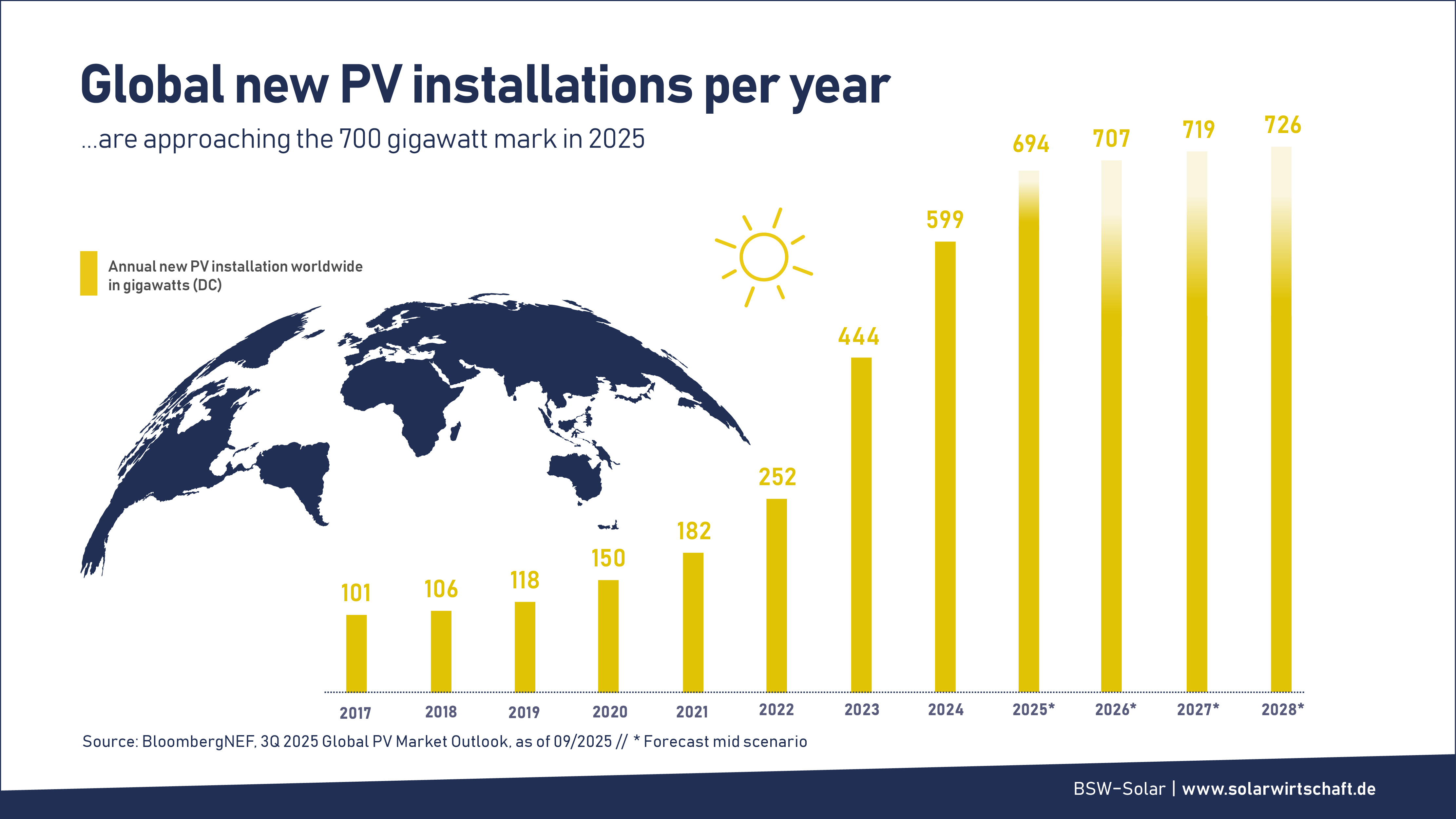 Photovoltaics is the fastest growing renewable energy source in the world. In 2025, the PV market is approaching the 700 gigawatt mark.